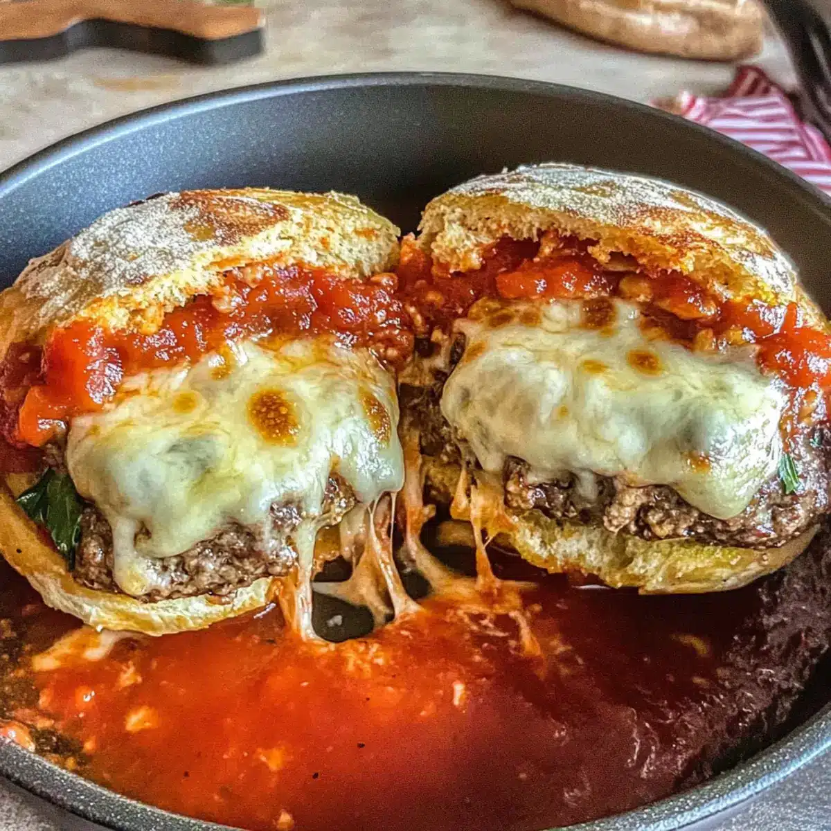 Diese Low Carb Gefüllte Pizza Burger Für Einfache Pfannenabendessen sind nicht nur lecker, sondern auch einfach zuzubereiten und perfekt für die ganze Familie!