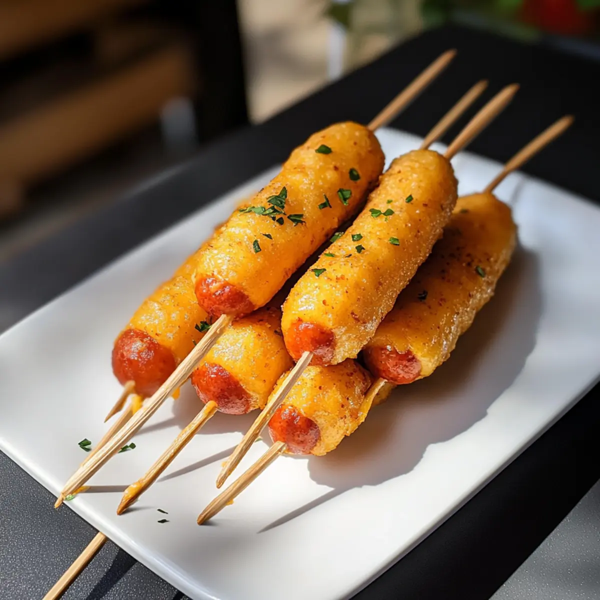 Serviere die krossen Maiswürstchen heiß, begleitet von deinen Lieblingsdips wie Ketchup oder Senf. Diese leckeren Snacks sind perfekt für jede Feier oder einen gemütlichen Abend. Genieße den ersten Biss und erfreue dich an dem knusprigen Teig und dem herzhaften Innenleben!
