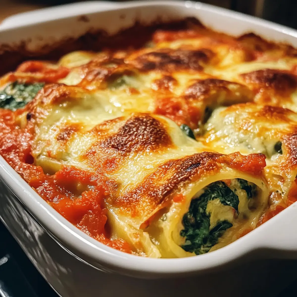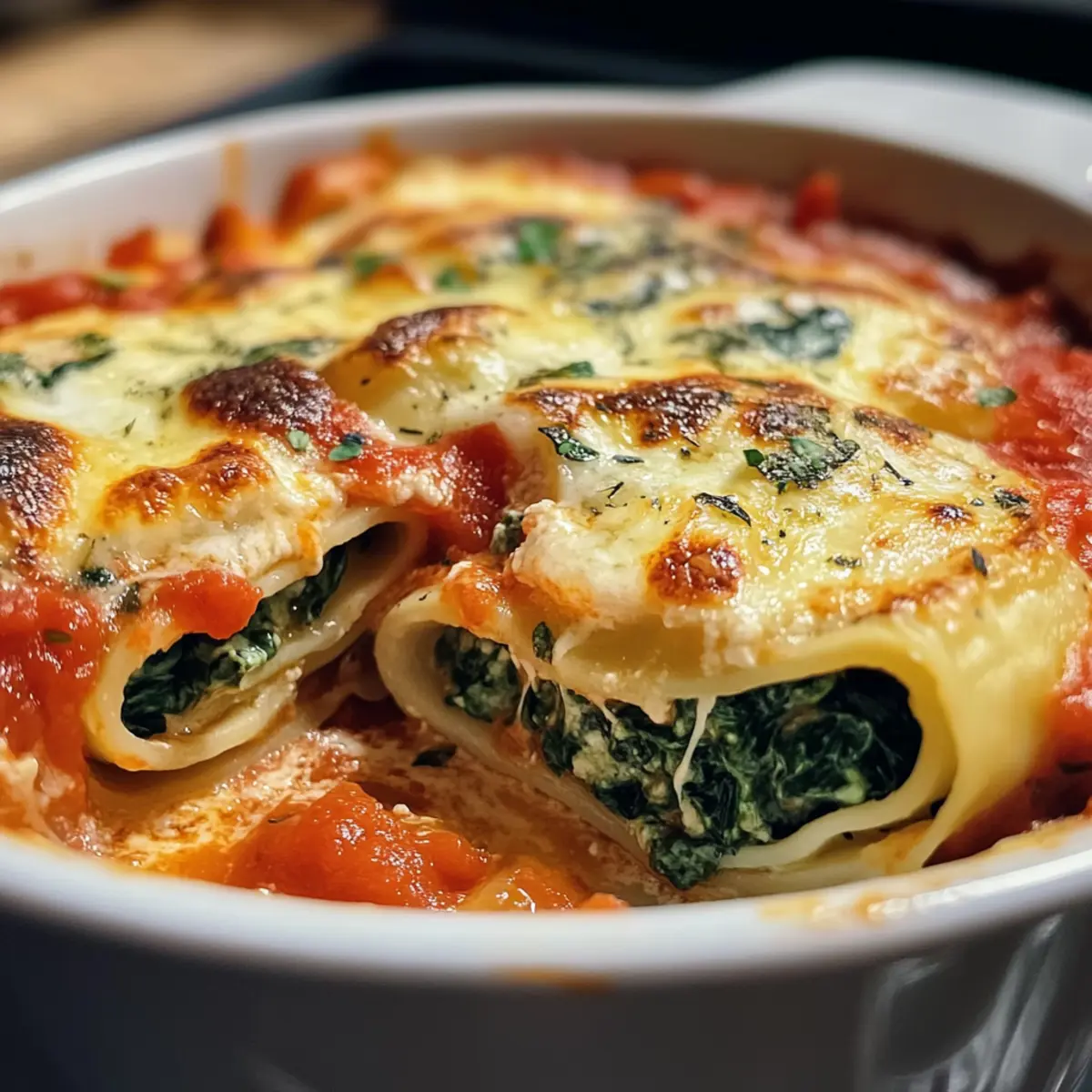 Herzhafter Geschmack: Die Kombination aus cremiger Tomatensoße und frischem Spinat verleiht jedem Biss eine wunderbare Tiefe.