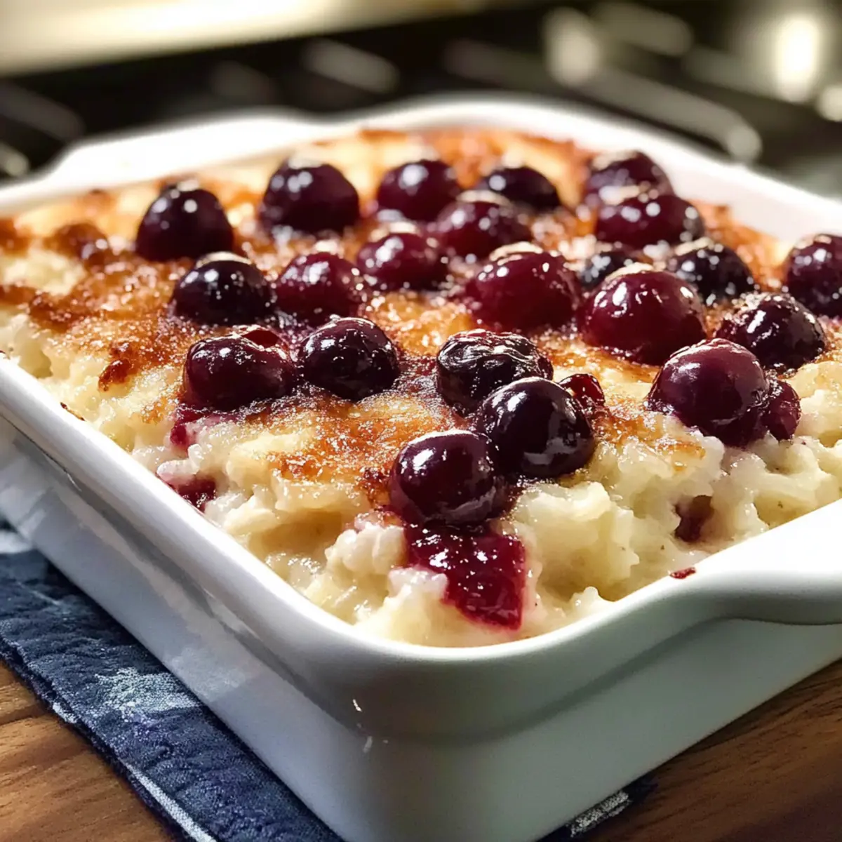 Optisch: Mit seiner cremigen Textur und den saftigen Kirschen ist dieser Auflauf nicht nur lecker, sondern auch ein echter Hingucker!