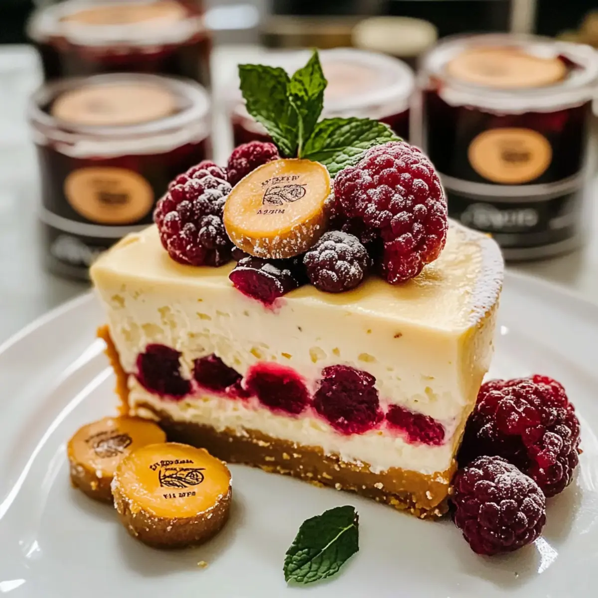 Cranberry-Marmelade: Diese süß-säuerliche Marmelade harmoniert bestens mit den Aromen des Käsekuchens und bringt zusätzliche Geschmackstiefe in jeden Bissen.