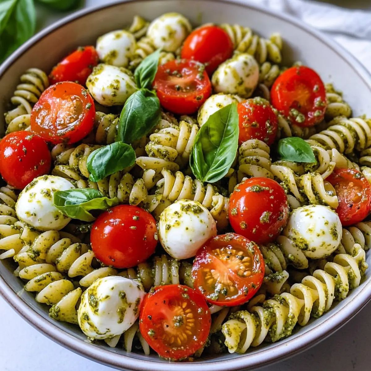 Frische Aromen: Mit saftigen Kirschtomaten und cremigem Mozzarella erlebst du den Geschmack Italiens im Sommer. Einfach zubereitet: Die Schritte sind so unkompliziert, dass du dich im Handumdrehen von der Küche ans Tischgespräch begeben kannst. Vielseitig: Ob als Hauptgericht oder Beilage, dieser Pesto-Nudelsalat passt zu jeder Gelegenheit – perfekt für BBQs oder leichte Mittagessen. Gesund und lecker: Er vereint die Vorteile von frischem Gemüse mit wenig Kalorien, ideal für ein bewusstes Essen. Entdecke zudem die Möglichkeit, ihn im Voraus zuzubereiten und damit Zeit zu sparen. Verpasse nicht die Chance, diesen makellosen Salat auszuprobieren!