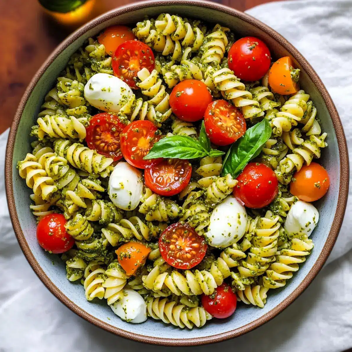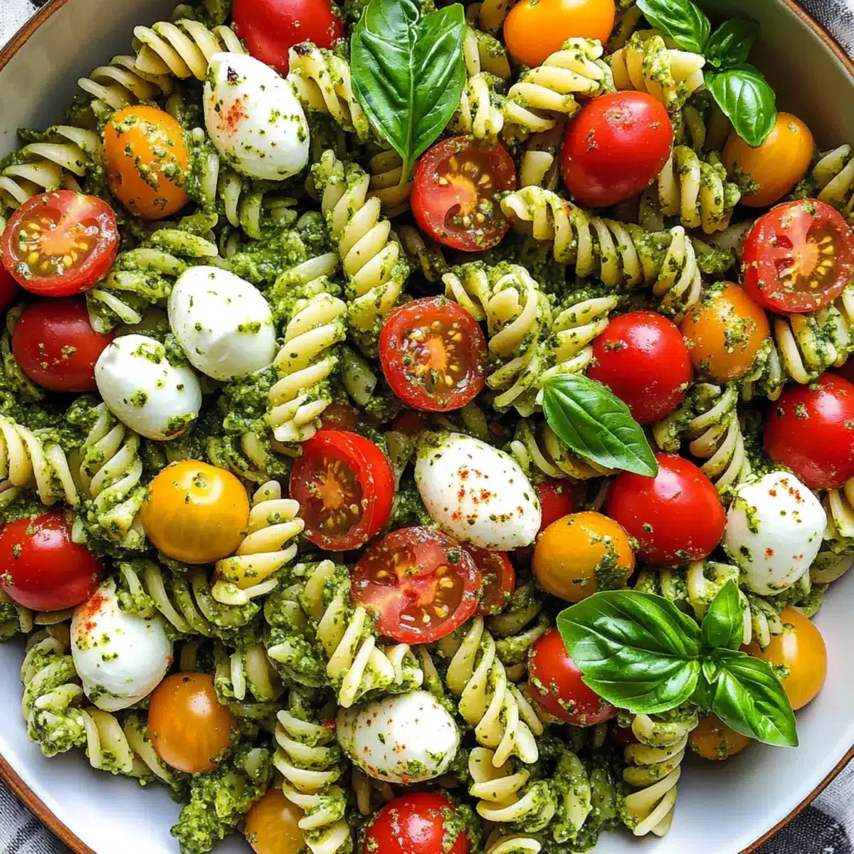 Pesto-Pasta-Salat mit Tomaten und Mozzarella