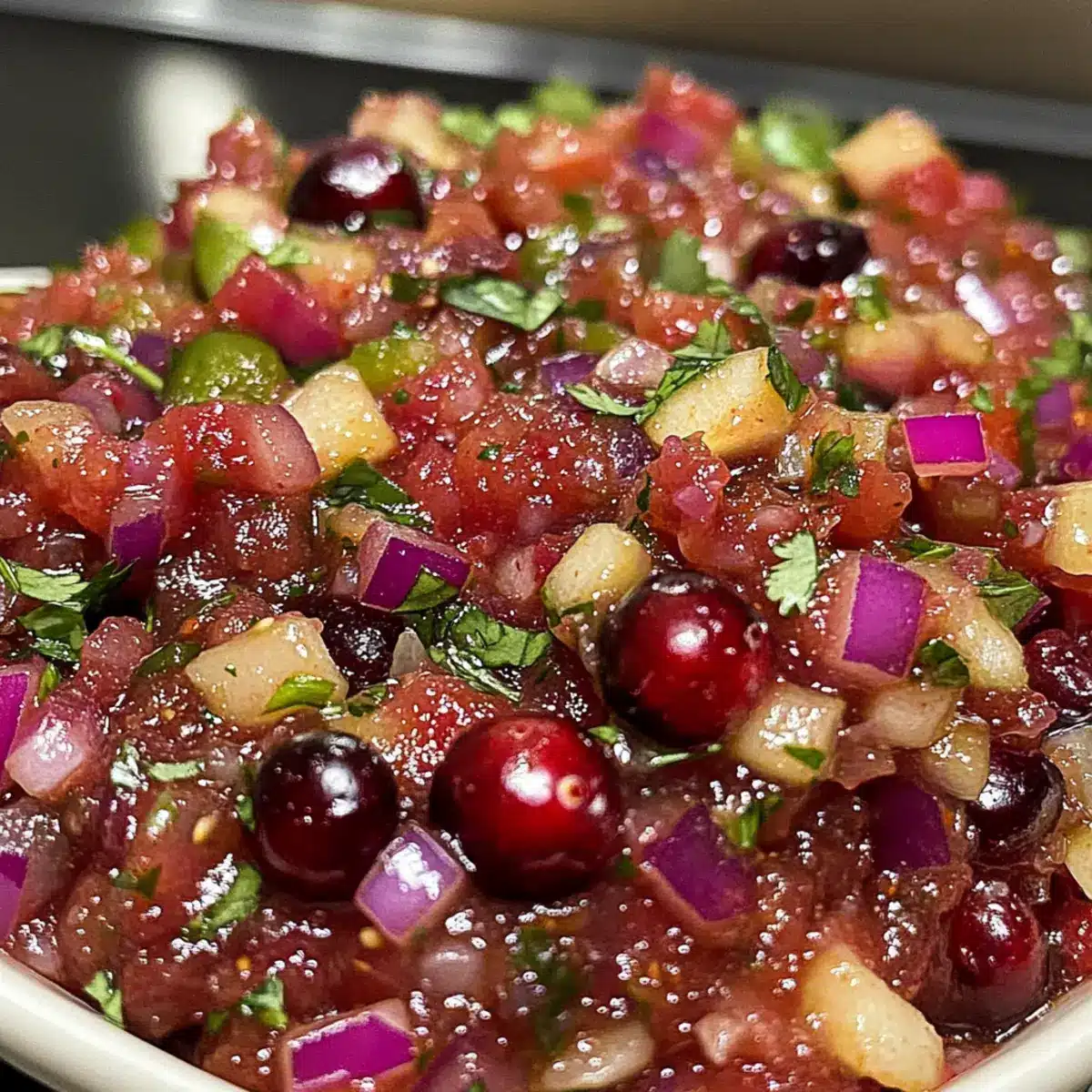 Frische, bunte Aromen: Diese Salsa begeistert mit ihrer lebendigen Mischung aus süßen Cranberries und scharfen Jalapeños, die jedem Gericht das gewisse Etwas verleihen.