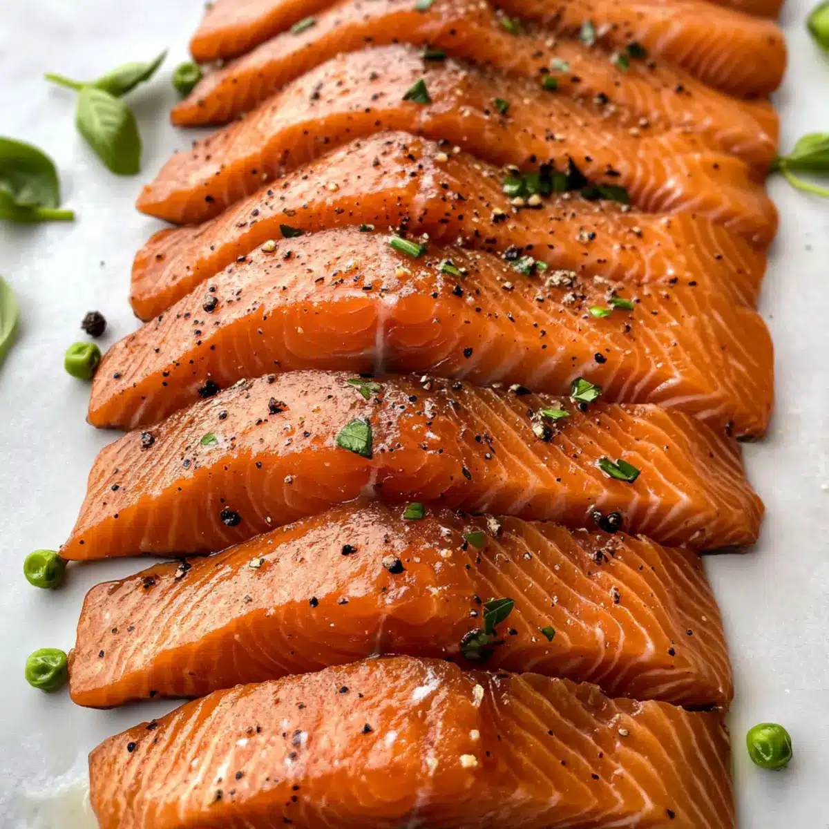 - Lachsfilet (9-10 lbs, mit Haut) – Das Hauptzutat; wähle Wildlachs für einen überlegenen Geschmack. Hinweis: Vorher gefroren, um Parasiten zu beseitigen.