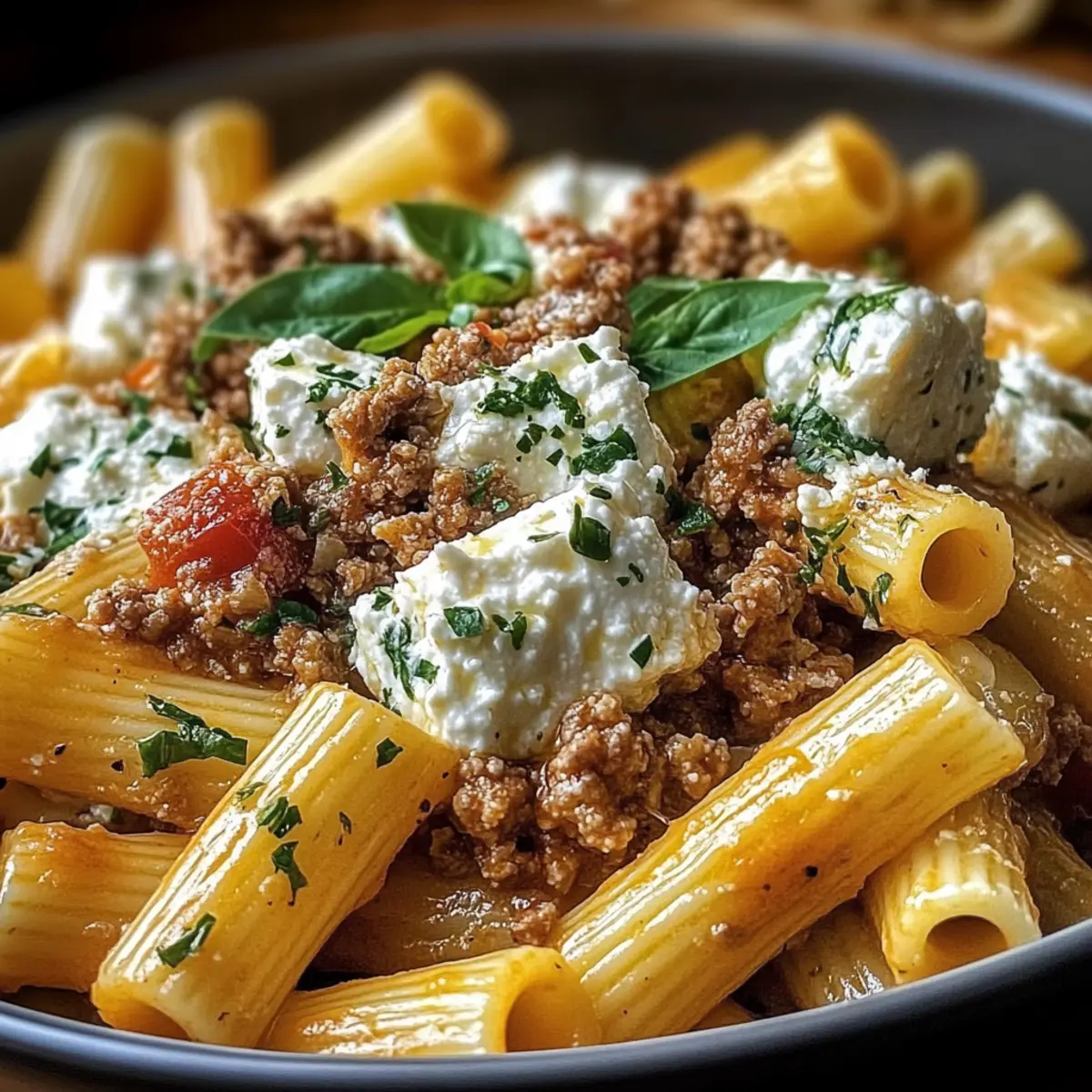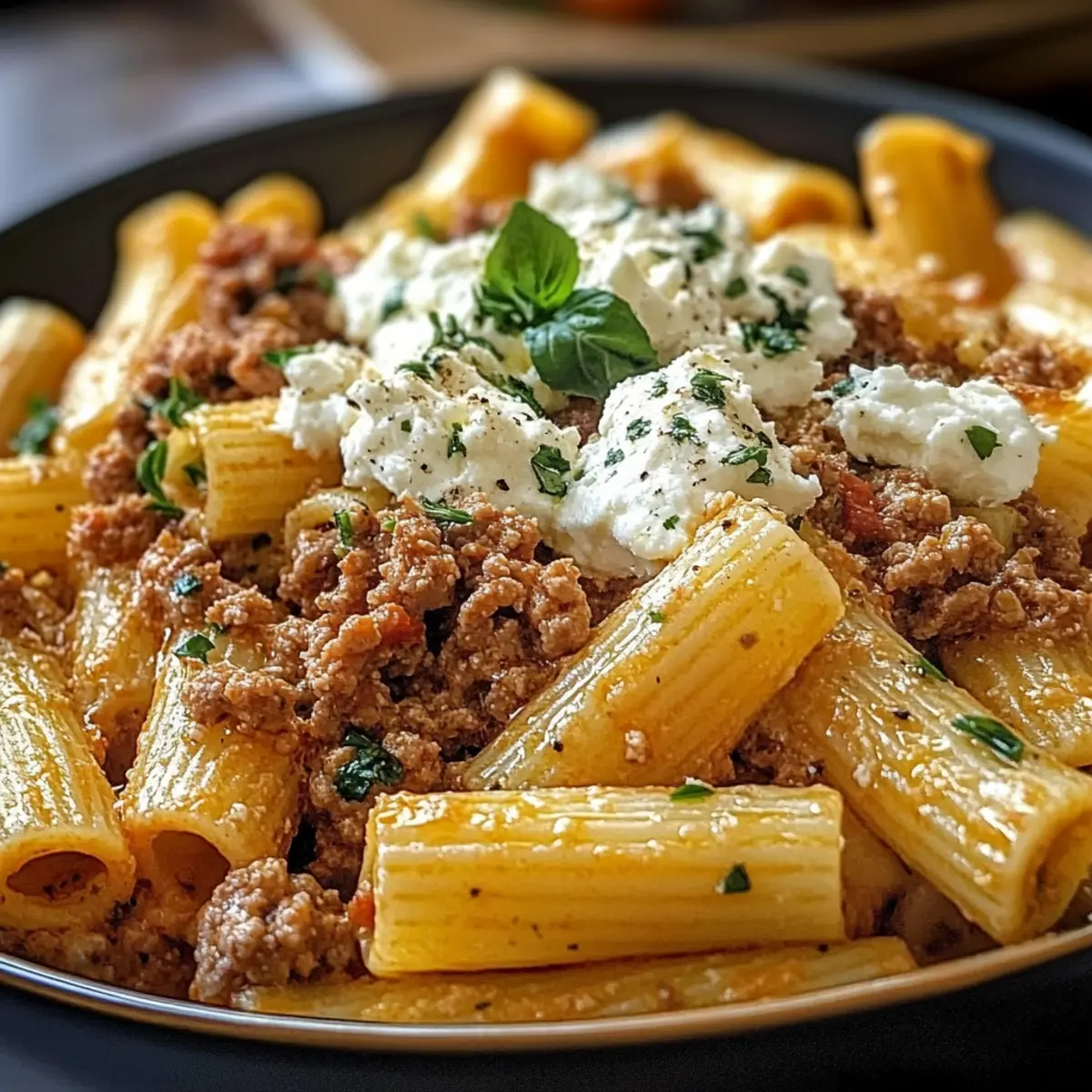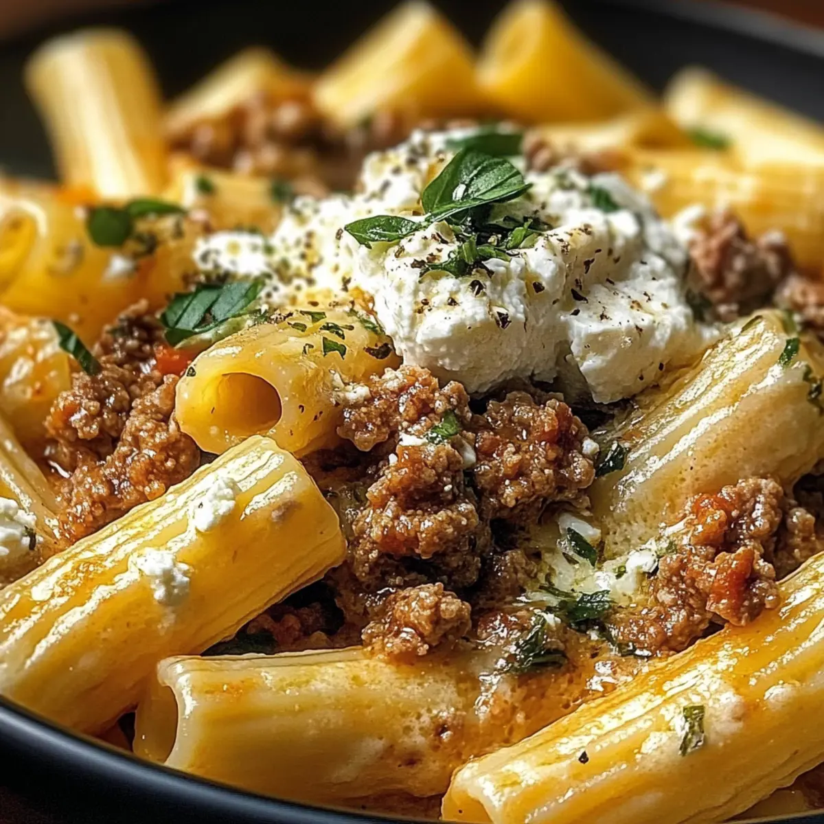 Cremiges Rigatoni mit Hackfleisch und Feta