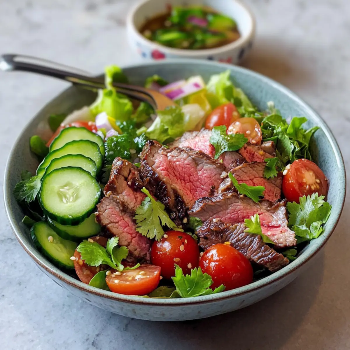 Genießen Sie eine vollständige Mahlzeit mit dem farbenfrohen und geschmackvollen Rindfleischsalat, der für jeden Anlass geeignet ist.