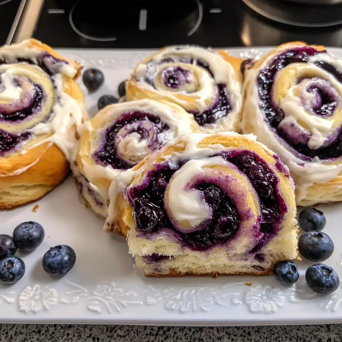 - Rollen und Füllen: Teig ausrollen, Heidelbeerkonfitüre und Heidelbeeren darauf verteilen, aufrollen und Stücke schneiden.