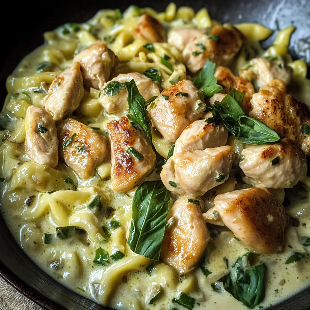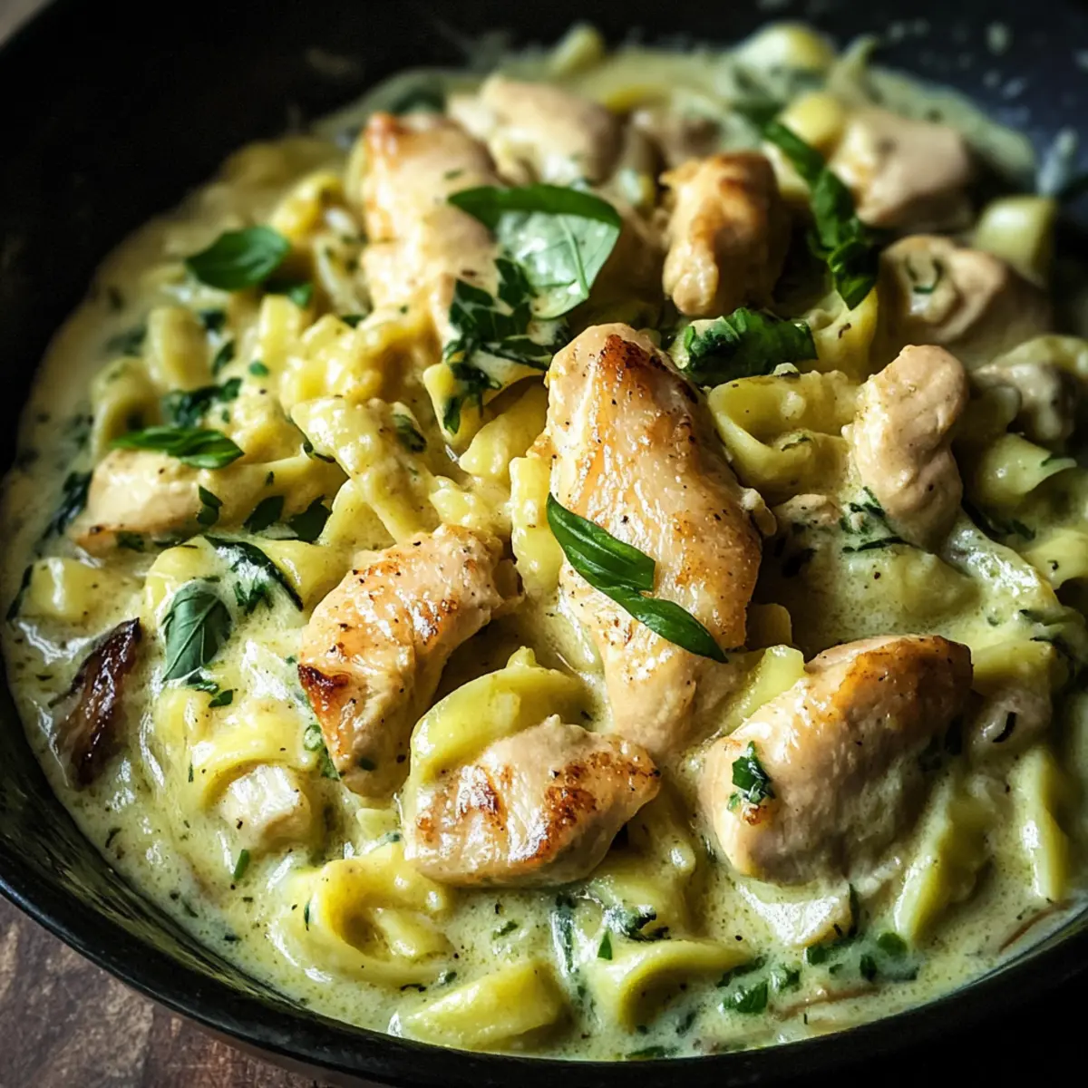 Spätzle Pfanne mit Hähnchen in Bärlauchrahm Glanzstück