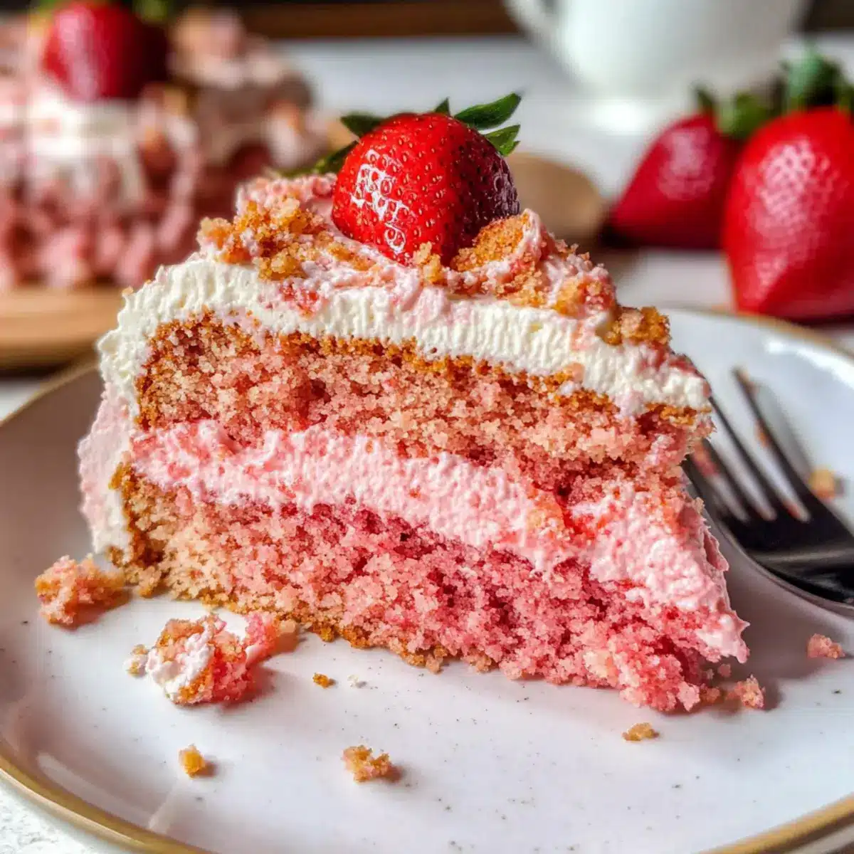 Veganer Erdbeer-Crunch-Kuchen mit goldenen Oreos