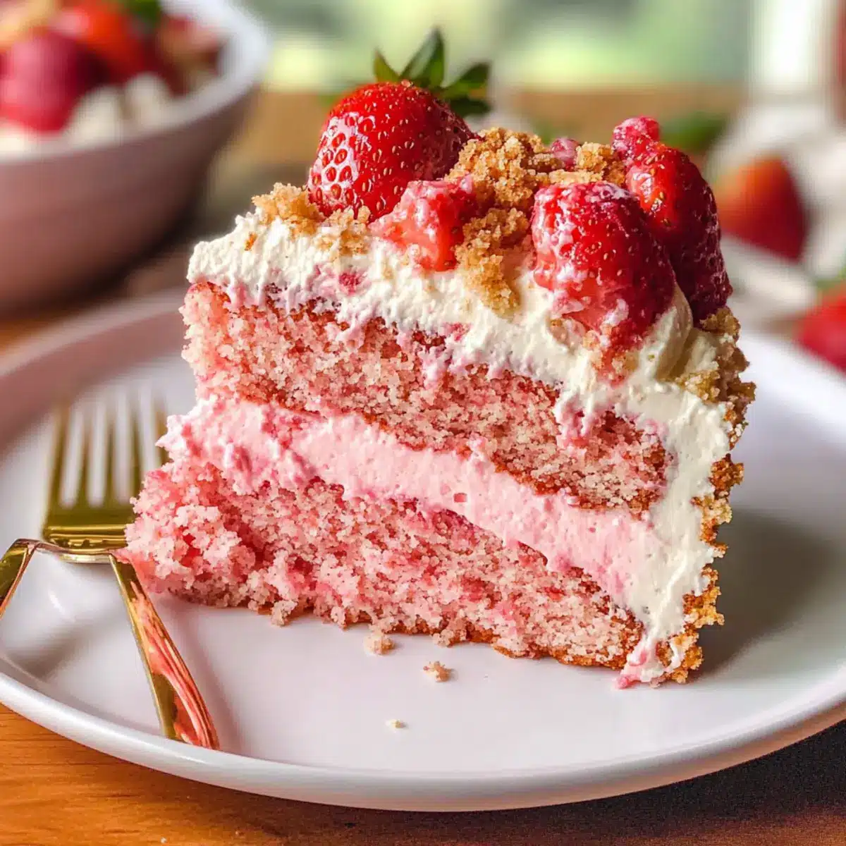 Nostalgie, die begeistert: Der vegane Erdbeer-Crunch-Kuchen weckt Erinnerungen an ein köstliches Erdbeereis aus der Kindheit und bringt Freude auf den Tisch.