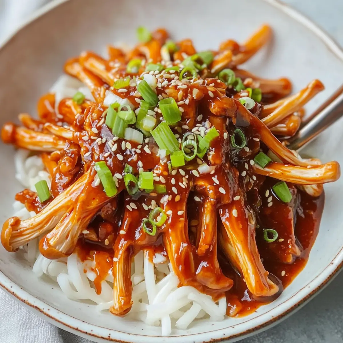 Einzigartig: Enoki-Pilze sind unglaublich vielseitig und bringen eine zarte Textur und einen milden Geschmack mit sich. Schnelle Zubereitung: In nur 15 Minuten können Sie dieses köstliche Gericht auf den Tisch bringen – perfekt für hektische Wochentage! Vegan und gesund: Ideal für pflanzenbasierte Ernährung, sind sie vollgepackt mit Nährstoffen und bieten eine leckere Abwechslung zu Fast Food. Würzige Vielfalt: Die Kombination aus Gochujang und frischen Zutaten sorgt für eine geschmackliche Explosion, die Ihre Sinne belebt. Beliebt bei allen: Sowohl Veganer als auch Fleischliebhaber werden von diesem Rezept begeistert sein. Wenn Sie auf der Suche nach weiteren leckeren Ideen sind, probieren Sie auch Knusperstangen Wie Vom oder Deftige Frikadellen Oma.