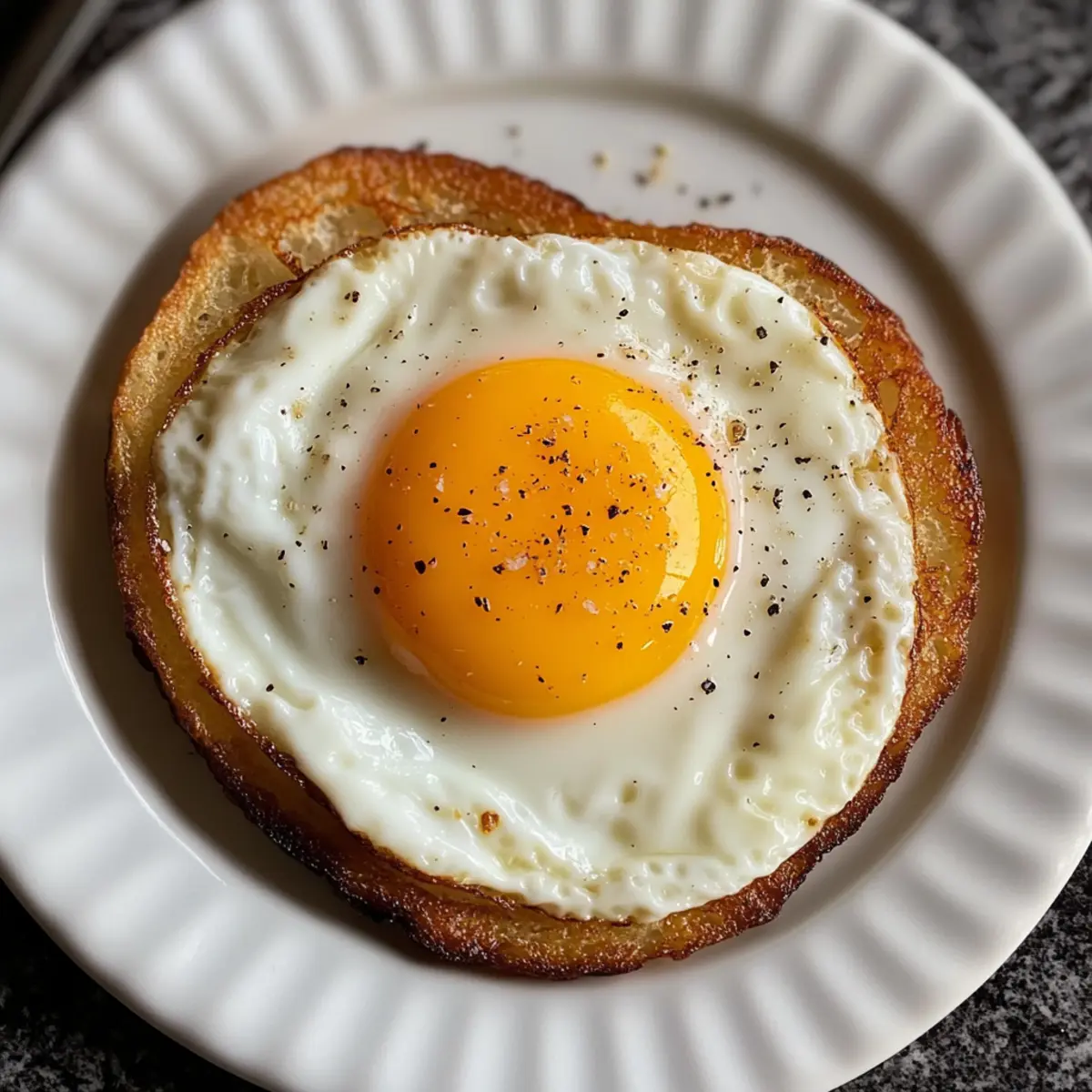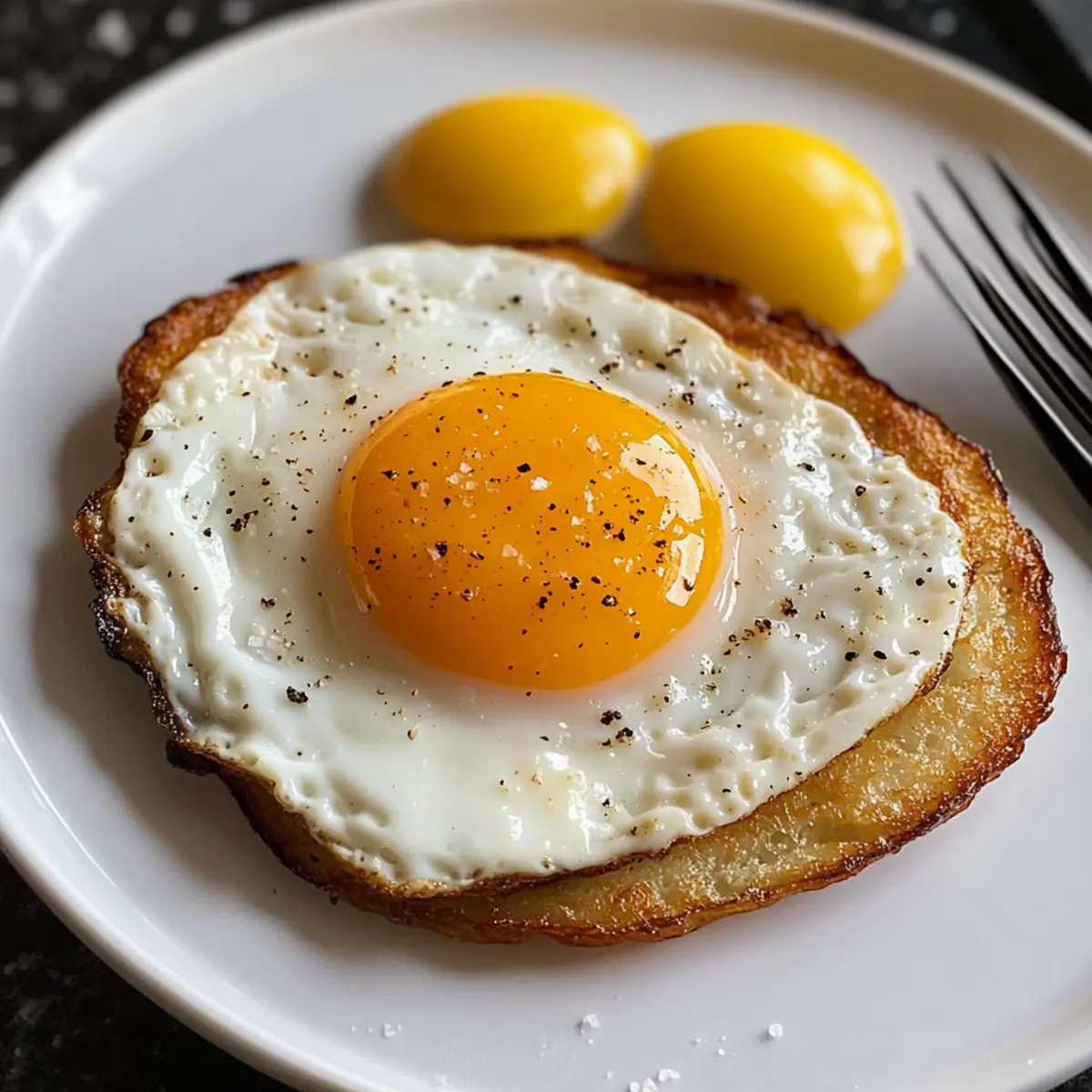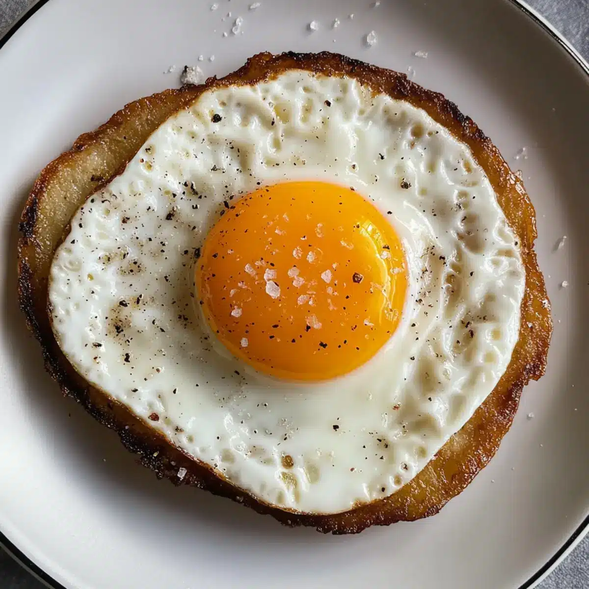 - Bestreue das Spiegelei mit einer Prise Salz und frisch gemahlenem Pfeffer.