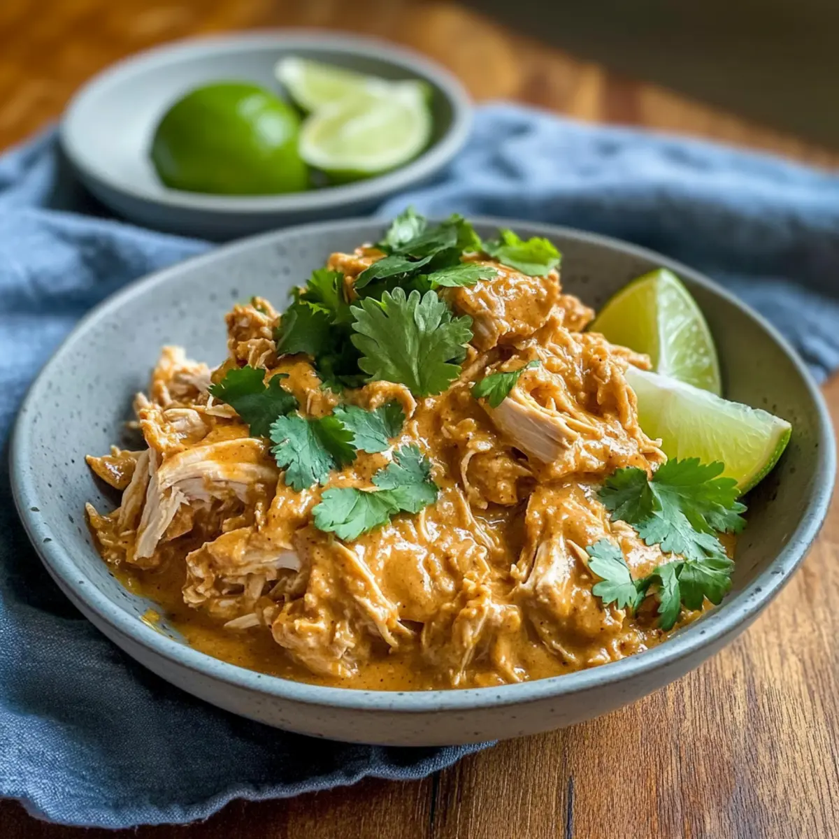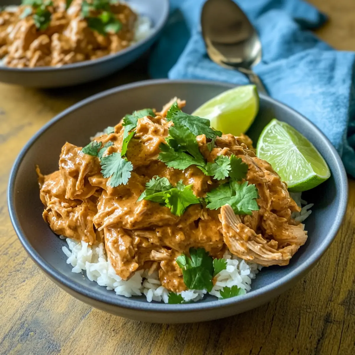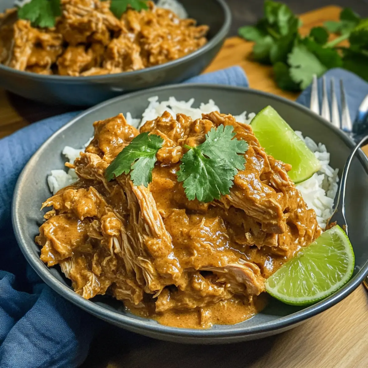 Sobald die Garzeit abgelaufen ist, nimm zwei Gabeln und ziehe das Hähnchen vorsichtig auseinander, bis es leicht zerfällt. Mische das zarte Hähnchen wieder mit der Sauce im Slow Cooker, sodass sich die Aromen vereinen. Du wirst überrascht sein, wie gut das zarte Hähnchen in der cremigen Erdnusssauce zur Geltung kommt.